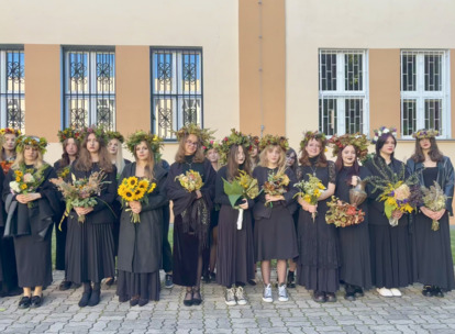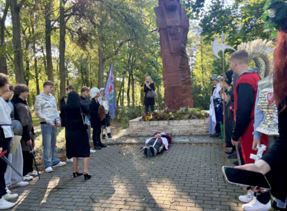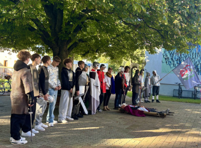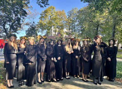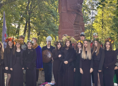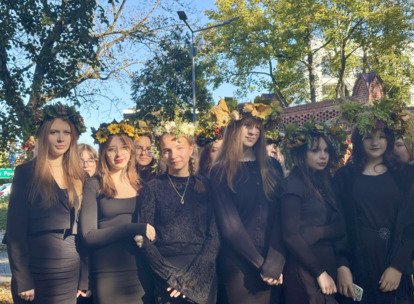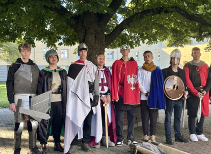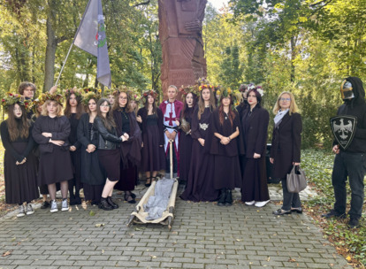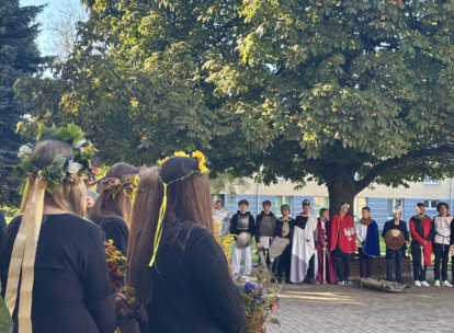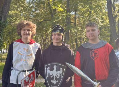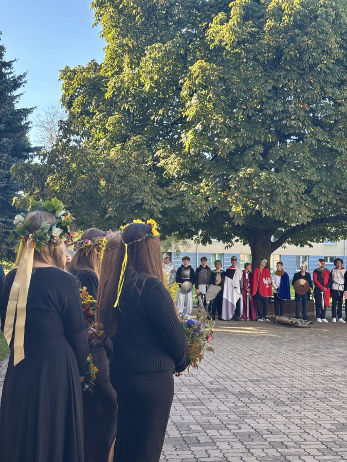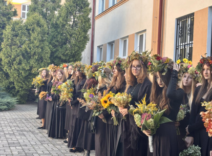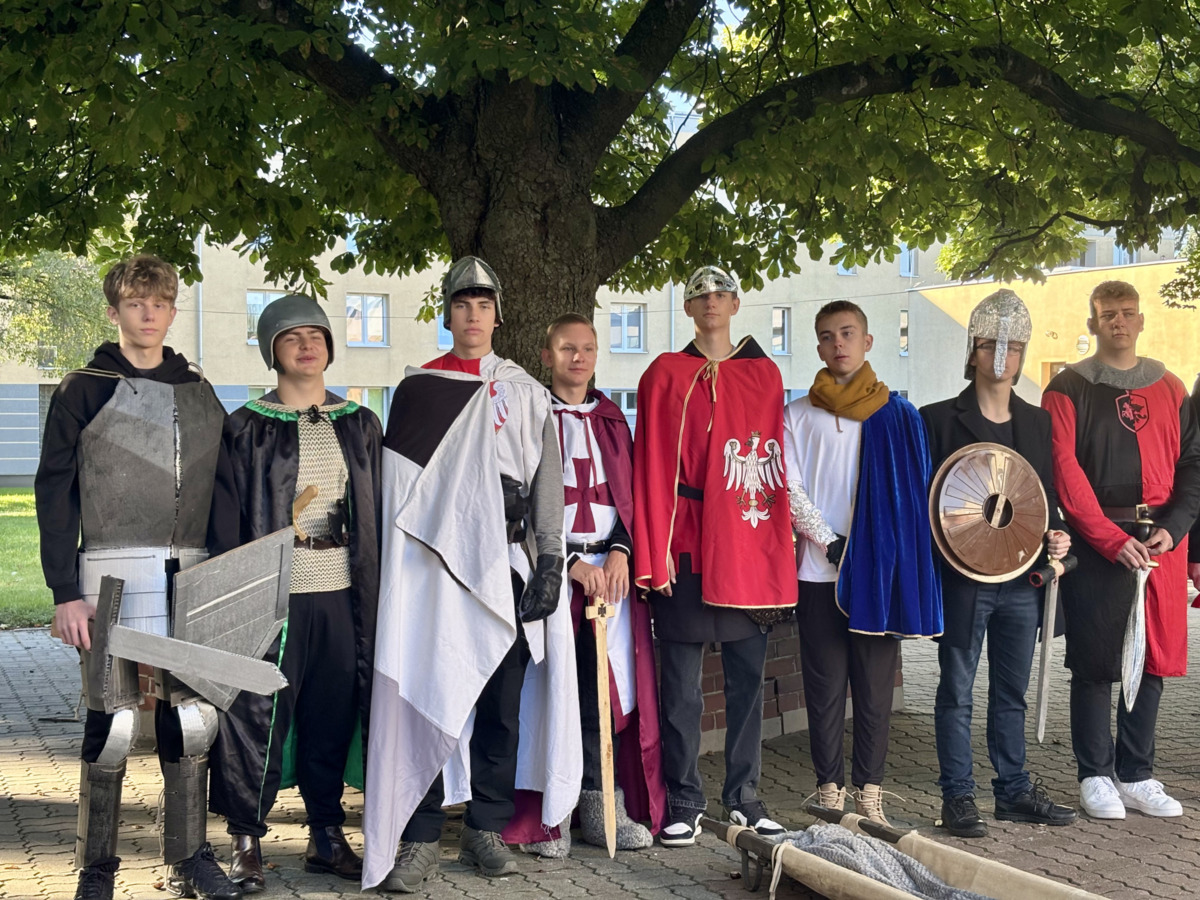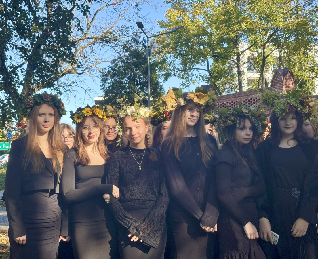 W środę 24.09.2025r., w dniu urodzin patrona naszej szkoły, po raz kolejny odbyła się plenerowa inscenizacja wiersza artysty pt.: „Bema pamięci - żałobny rapsod”. Na tegorocznej uroczystości gościliśmy uczniów z Ośrodka Szkolno-Wychowawczego i ich wychowawczynie panią Beatą Glinką oraz panią Pauliną Biernacką. Obecny był również wicedyrektor szkoły, pan Wojciech Chaciński. Uroczystość rozpoczęła się złożeniem kwiatów pod pomnikiem C. Norwida w szkolnym parku przez delegacje klas pierwszych. Białe kwiaty przewiązane błękitną wstążką mają przypominać o prawdzie, wolności i honorze. Kolejnym punktem naszej uroczystości było wysłuchanie utworu Norwida w oprawie muzycznej Czesława Niemena. Następnie drugoklasiści przebrani za płaczki oraz drużynę rycerską wyruszyli pochodem przez nasze miasto do parku. Dziewczęta opłakiwały zmarłego, a chłopcy nieśli ciało Bema, czyli Roberta Nasiadkę z klasy 2A. Nasz kolega został uroczyście położony pod pomnikiem C. Norwida w miejskim parku. Płaczki, przeszedłszy pod szpalerem z drewnianych mieczy, złożyły swoje bukiety "Bemowi" i "Norwidowi". Po zakończeniu inscenizacji nadszedł czas na pamiątkowe zdjęcia z koleżanką - płaczką w niepowtarzalnym wianku i kolegą - rycerzem, z którym wcześniej udało się stoczyć honorowy pojedynek:)