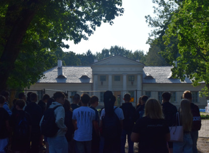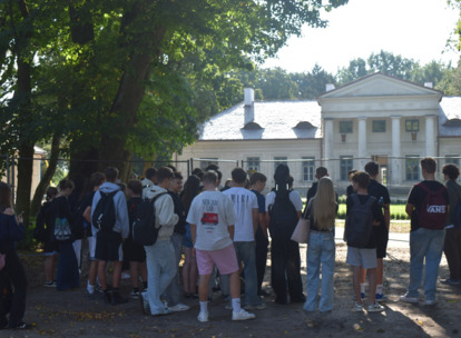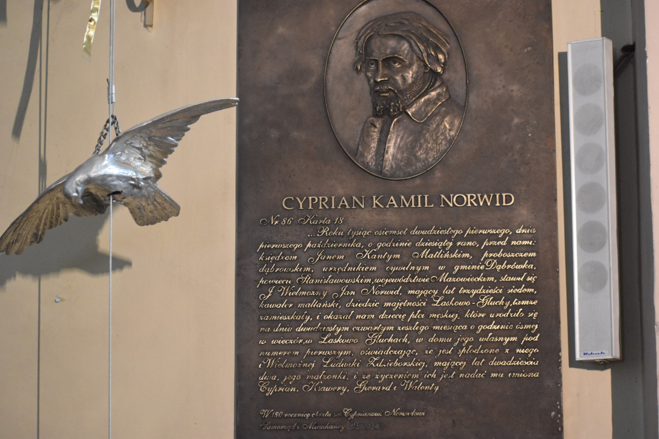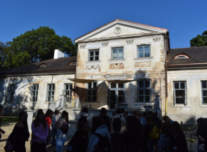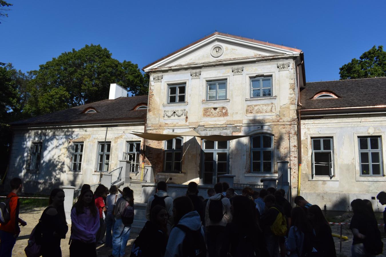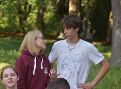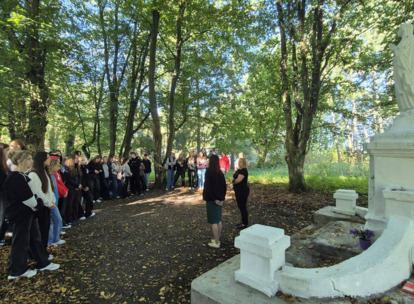 We wtorek 9 września odbyliśmy wycieczkę śladami Cypriana Norwida. Pierwszym punktem naszej wyprawy był stuletni kościół Podwyższenia Krzyża Świętego w Dąbrówce, w którym ochrzczony został nasz patron. Po krótkim zapoznaniu się z informacjami odsyłającymi do okoliczności narodzin i chrztu Cypriana Ksawerego Gerarda Walentego Norwida udaliśmy się na cmentarz na symboliczny grób jego matki, gdzie nasz kolega, Maciek Pawłowski, opowiedział nam historię związaną z miejscem pochówku. Ciekawe, że nie znane jest miejsce spoczynku zarówno Ludwiki ze Ździeborskich Norwidowej, jak i jej syna. Następnie wyruszyliśmy do Dębinek, gdzie mieści się dworek, w którym wychował się poeta, a właściwie spędzał czas wolny od nauki. Miejsce to zaledwie kilka lat temu (2021r) zostało wykupione oraz przemienione w muzeum upamiętniające Cypriana Norwida, W otaczającym dwór parku czekały na nas następujące aktywności: spotkanie z aktorem i reżyserem Grzegorzem Mrówczyńskim, zajęcia integracyjne z panią pedagog Pauliną Biernacką oraz gra terenowa, w której we współpracujących grupach musieliśmy znaleźć wszystkie fragmenty mapy ukryte za seriami zagadek. Po połączeniu wszystkich części ukazało nam się miejsce ukrytego skarbu. Po zajęciach nadszedł czas na odpoczynek przy ognisku i gitarze (dziękujemy Maksowi!), część z nas wykorzystała ten czas także na gry zespołowe, zdjęcia i rozmowyJ Wycieczka ta była świetnym pomysłem ze strony naszej wychowawczyni Pani Marzeny Delugi oraz wychowawczyni klasy 1B Pani Renaty Kacperskiej.