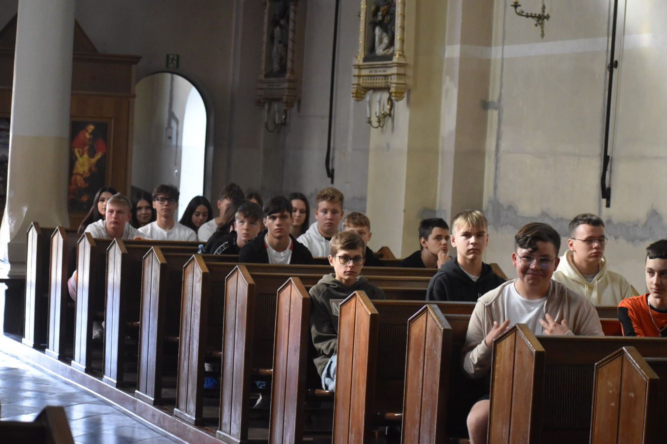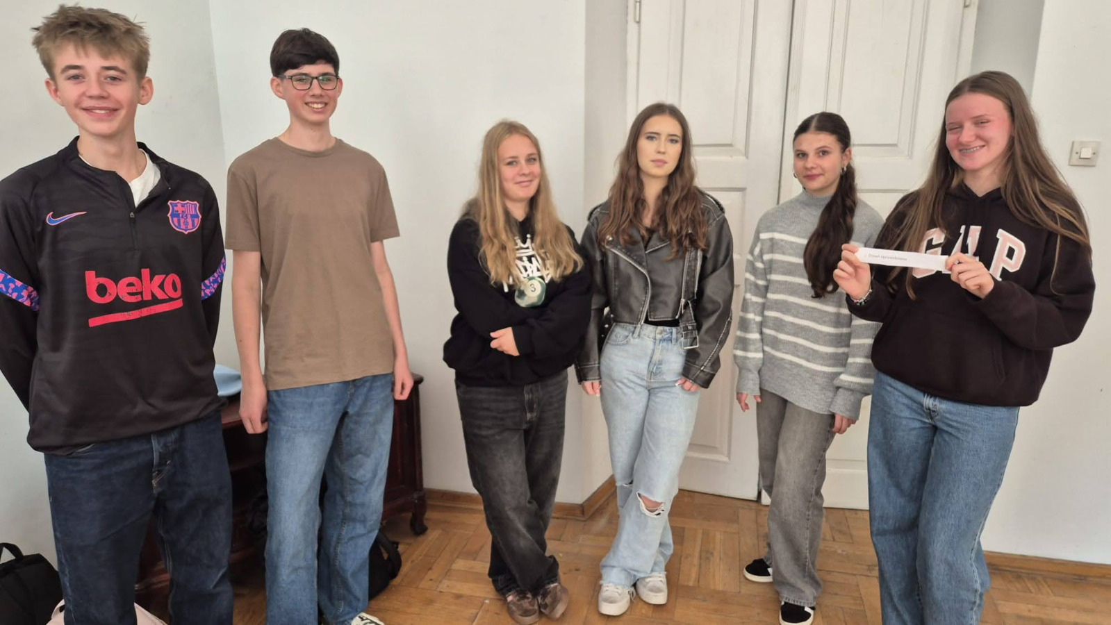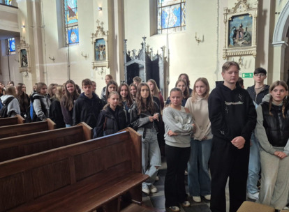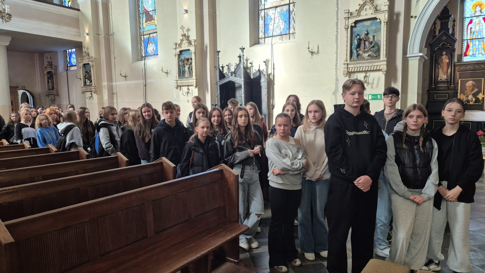 Dnia 18 września 2025 r. klasa 1c oraz 1e wraz z wychowawczyniami wybrały się na wycieczkę do Dębinek. Podczas wyjazdu odwiedziliśmy miejsca związane z patronem naszej szkoły – Cyprianem Kamilem Norwidem oraz spędziliśmy czas na wspólnej integracji. Najpierw zawitaliśmy do Dąbrówki, gdzie zwiedziliśmy kościół, w którym poeta został ochrzczony. Następnie wybraliśmy się na cmentarz parafialny i zapaliliśmy znicze na symbolicznym grobie matki Norwida, by uczcić jej pamięć. Kolejnym punktem naszej wycieczki było muzeum Cypriana Norwida w Dębinkach, gdzie sam Norwid pomieszkiwał w okresie letnim. Tam czekała na nas emocjonująca gra terenowa – poszukiwanie zaginionego rękopisu poety, projekcja filmu wprowadzającego nas w klimat dawnych lat oraz zabawy integracyjne przygotowane przez panią Justynę Cieciórę i panią Magdalenę Kimulę. Naszą przygodę zakończyliśmy ogniskiem z kiełbaskami i dobrą zabawą.