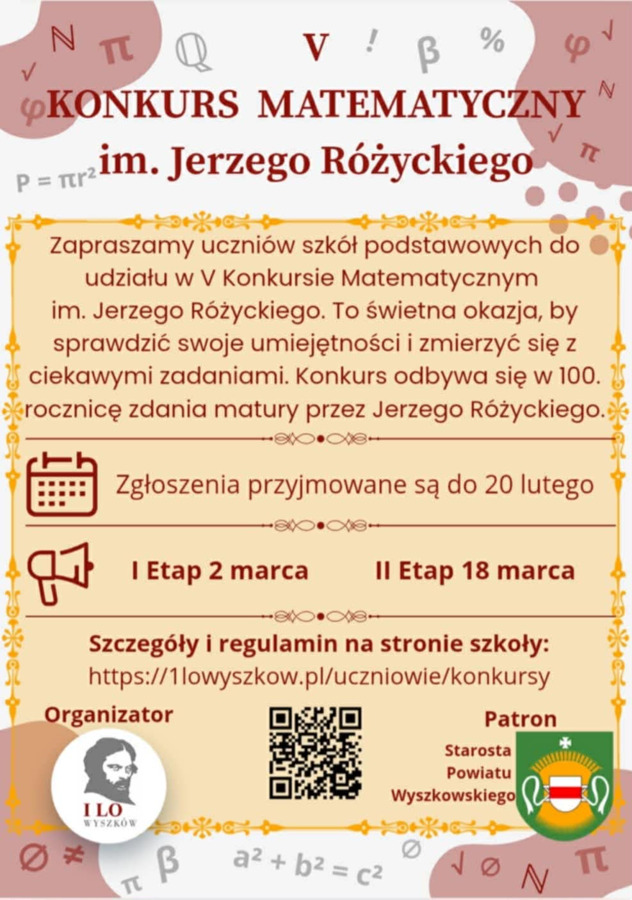 - Regulamin V Konkursu Matematyczno-Informatycznego Im. Jerzego Różyckiego dla uczniów szkół ponadpodstawowych